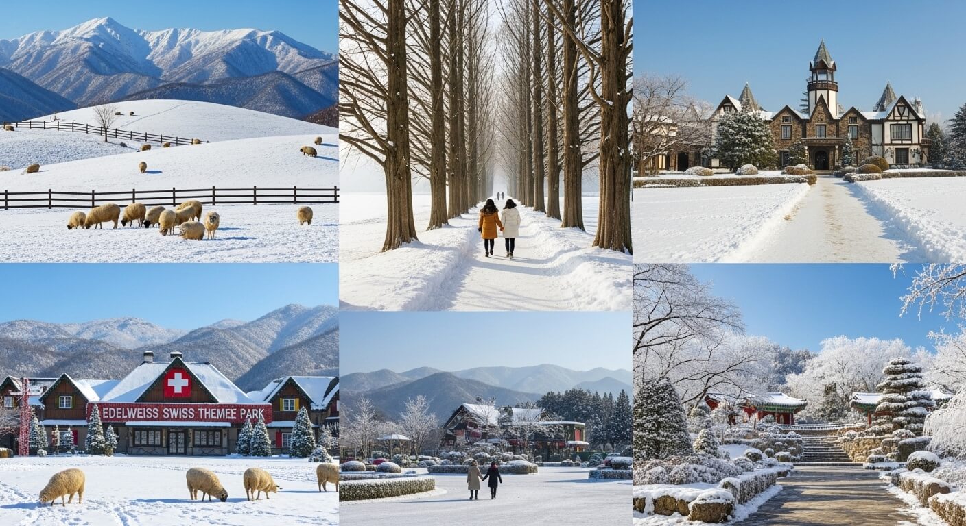아침고요수목원의 오색별빛정원전을 관람하고, 에델바이스 스위스테마파크에서 유럽풍 설경을 만끽하세요. 마지막 날에는 쁘띠프랑스에서 겨울 동화마을의 정취를 느끼며 여행을 마무리하세요.