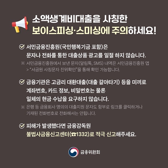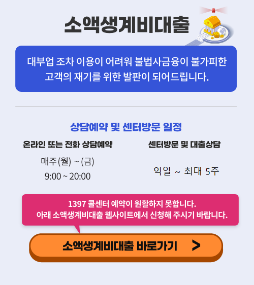 불법사금융이 불가피한 고객의 재기를 위한 상품(소액생계비대출, 소액생계비, 긴급생계비)