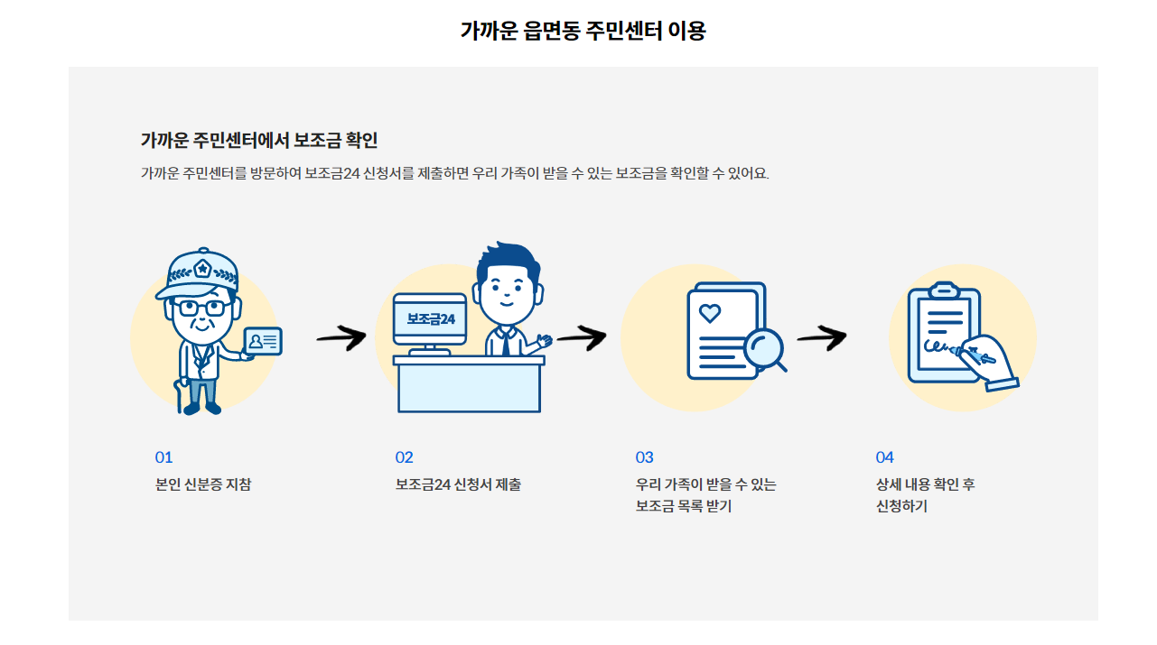 ○ 정부 보조금 24를 이용하려면 다음과 같은 순서를 따라야 합니다.