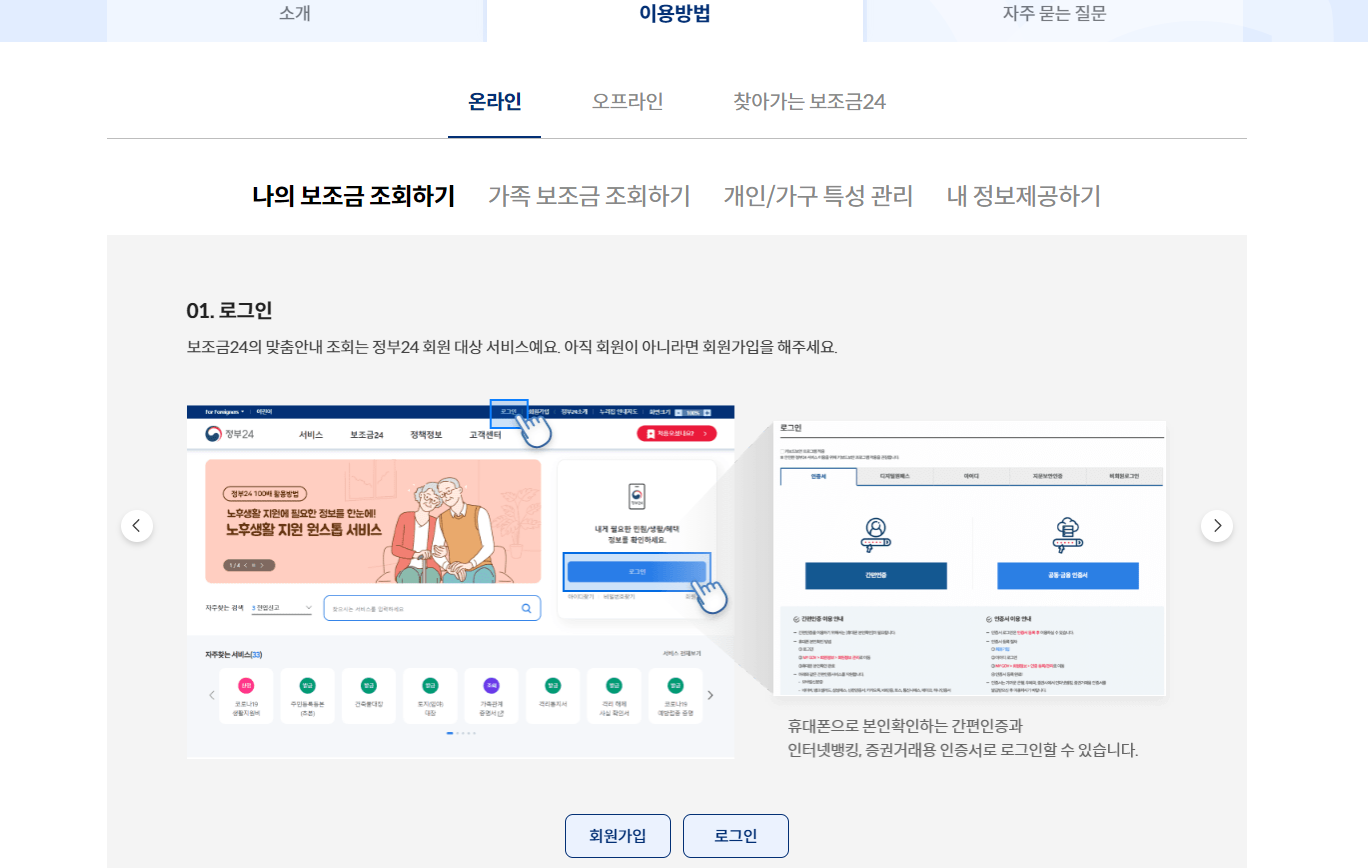 정부 보조금 24의 이용방법