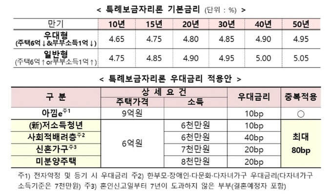 특례보금자리론 대출한도와 금리